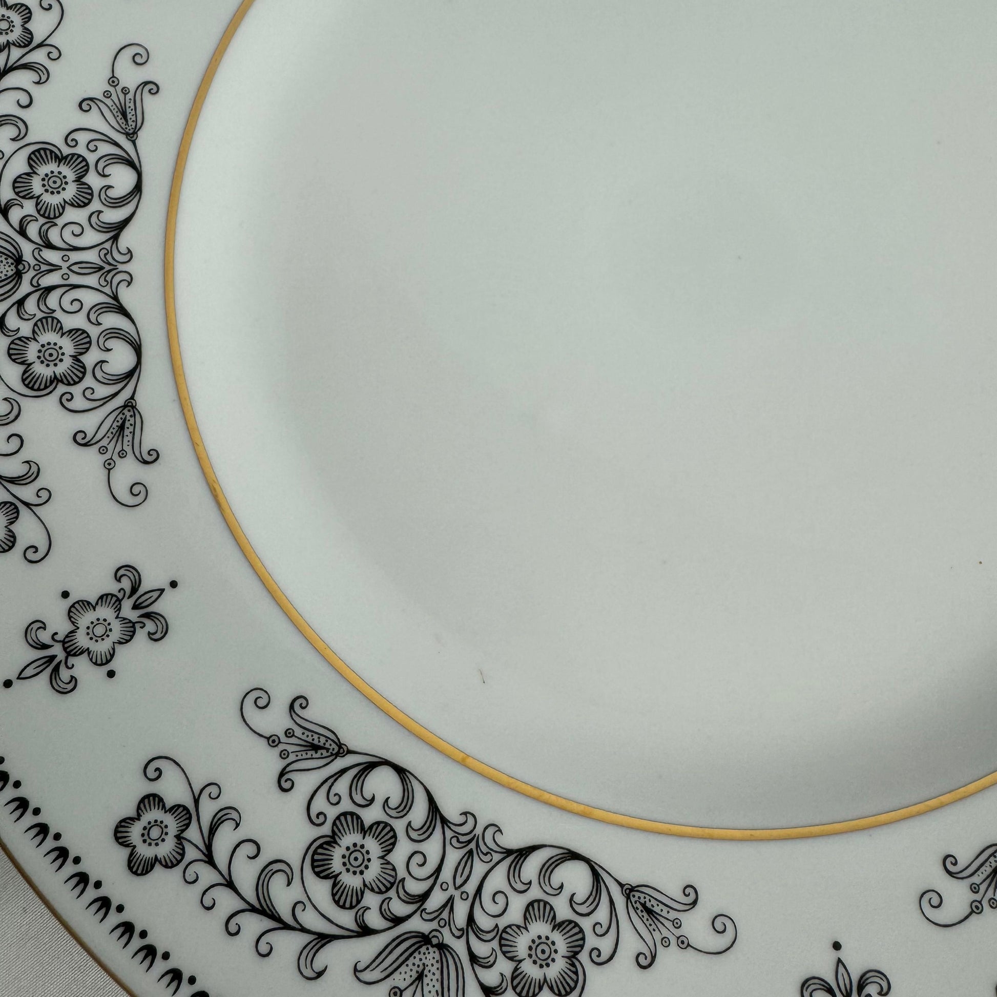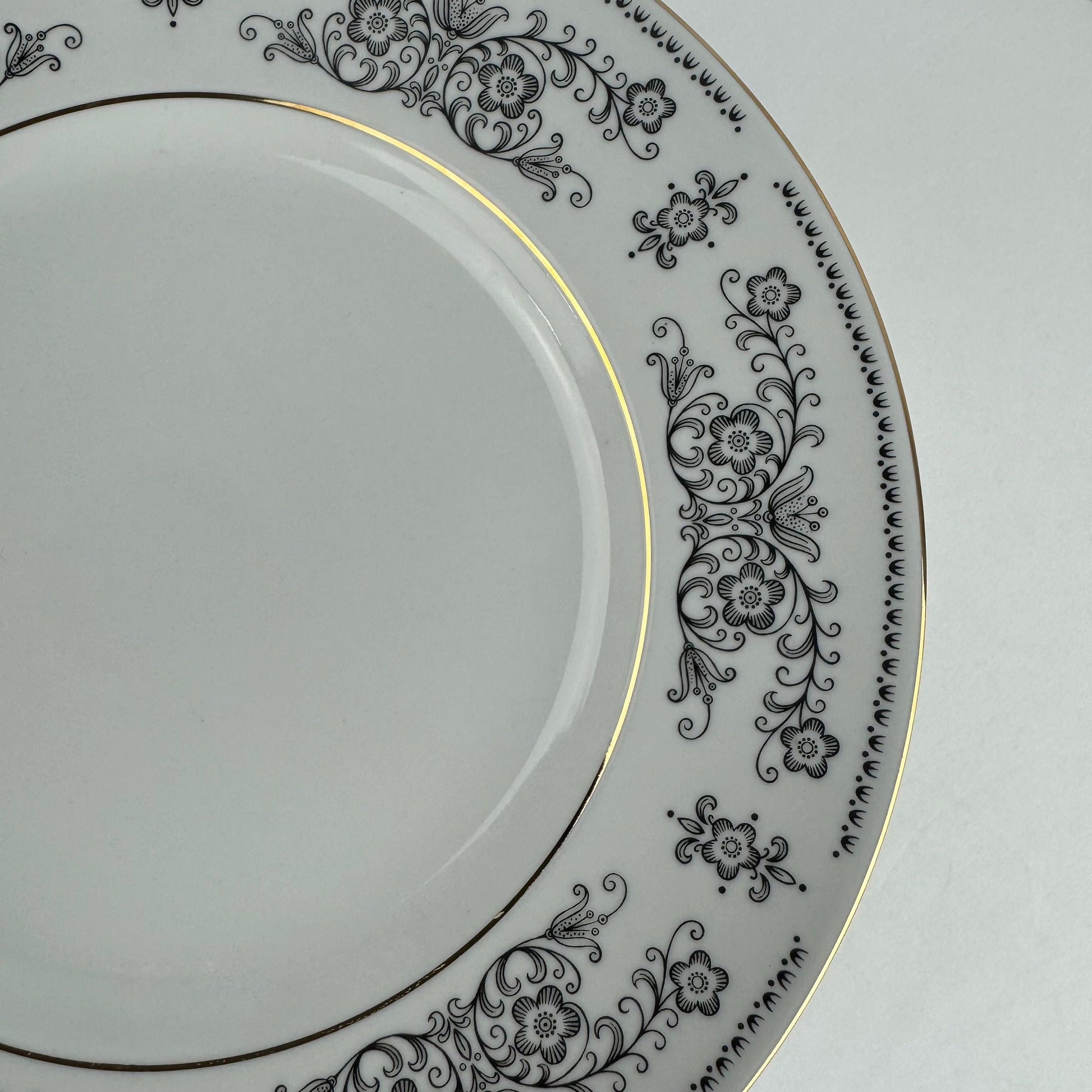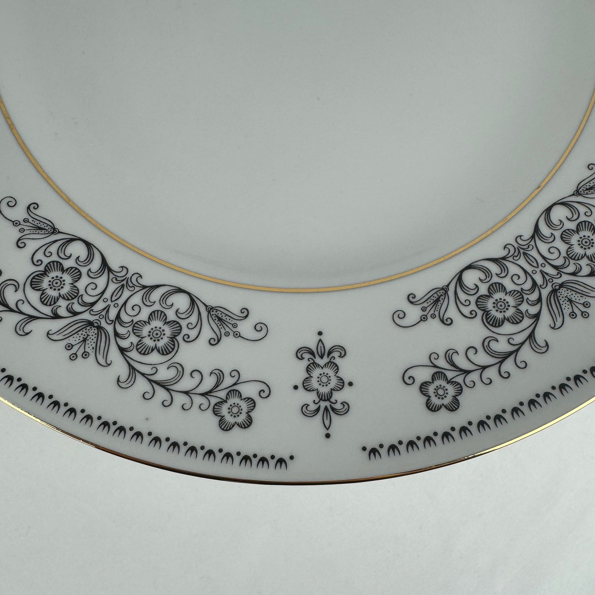 Vintage Henneberg Porzellan 1777 White Black Floral Dinner Plates Set of 6